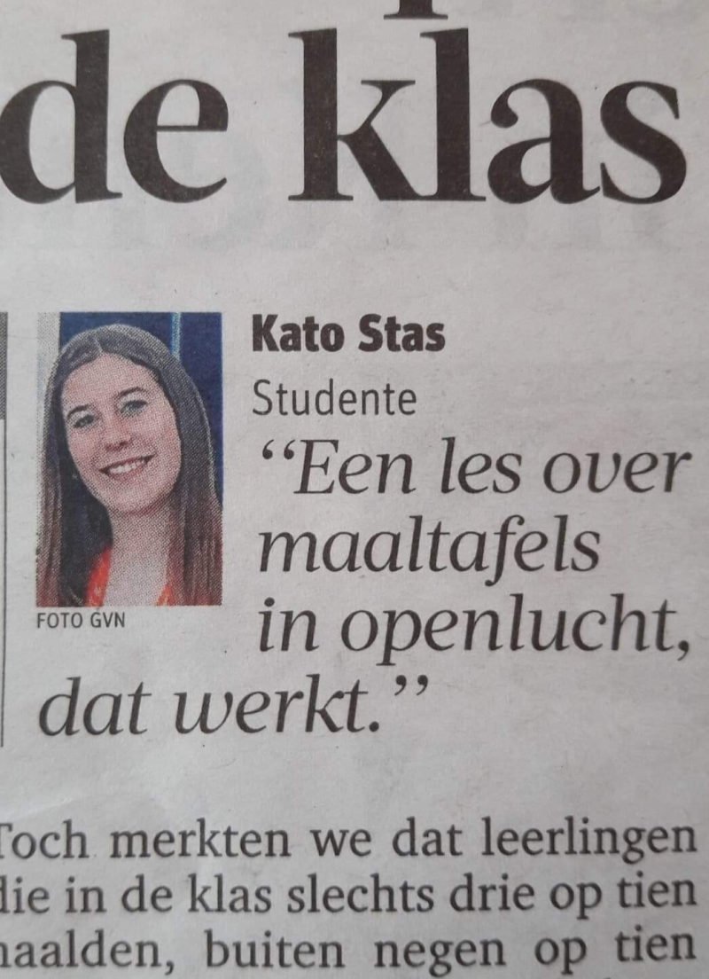 Ik merk dat het een groot effect op mij als leerkracht heeft gehad, omdat ik na dit project veel buitenlessen heb gemaakt voor mijn stages. Ik wil dit in de toekomst graag blijven doen. Ik gebruik buitenlessen zowel om iets aan te brengen, als om iets te verwerken. Het is bewezen dat het positief is om een beweging te koppelen aan leerstof in de buitenlucht. Veel leerlingen zijn meer betrokken en onthouden de leerstof beter op deze manier.